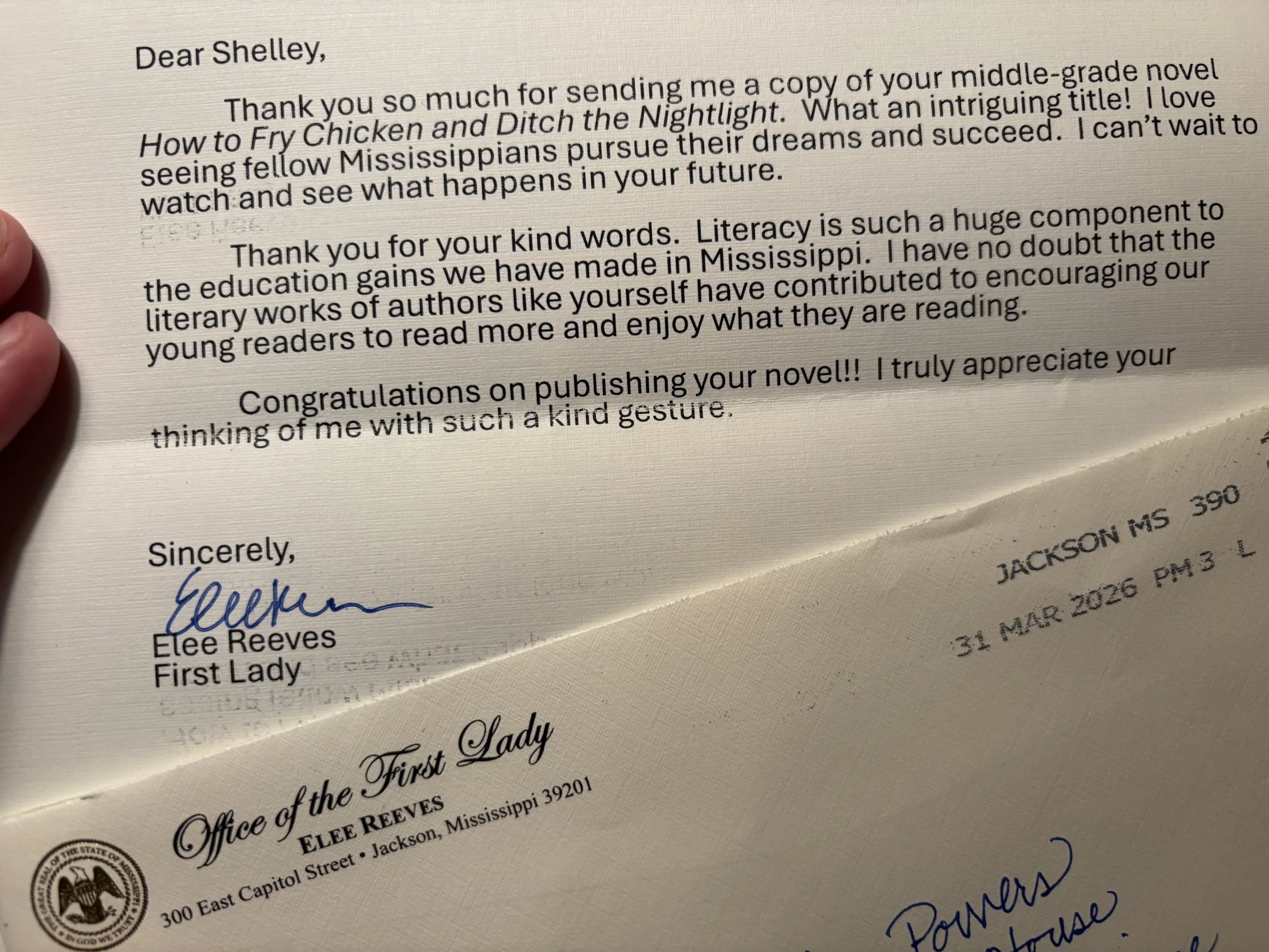 A gracious letter from Mississippi’s First Lady, Elee Reeves