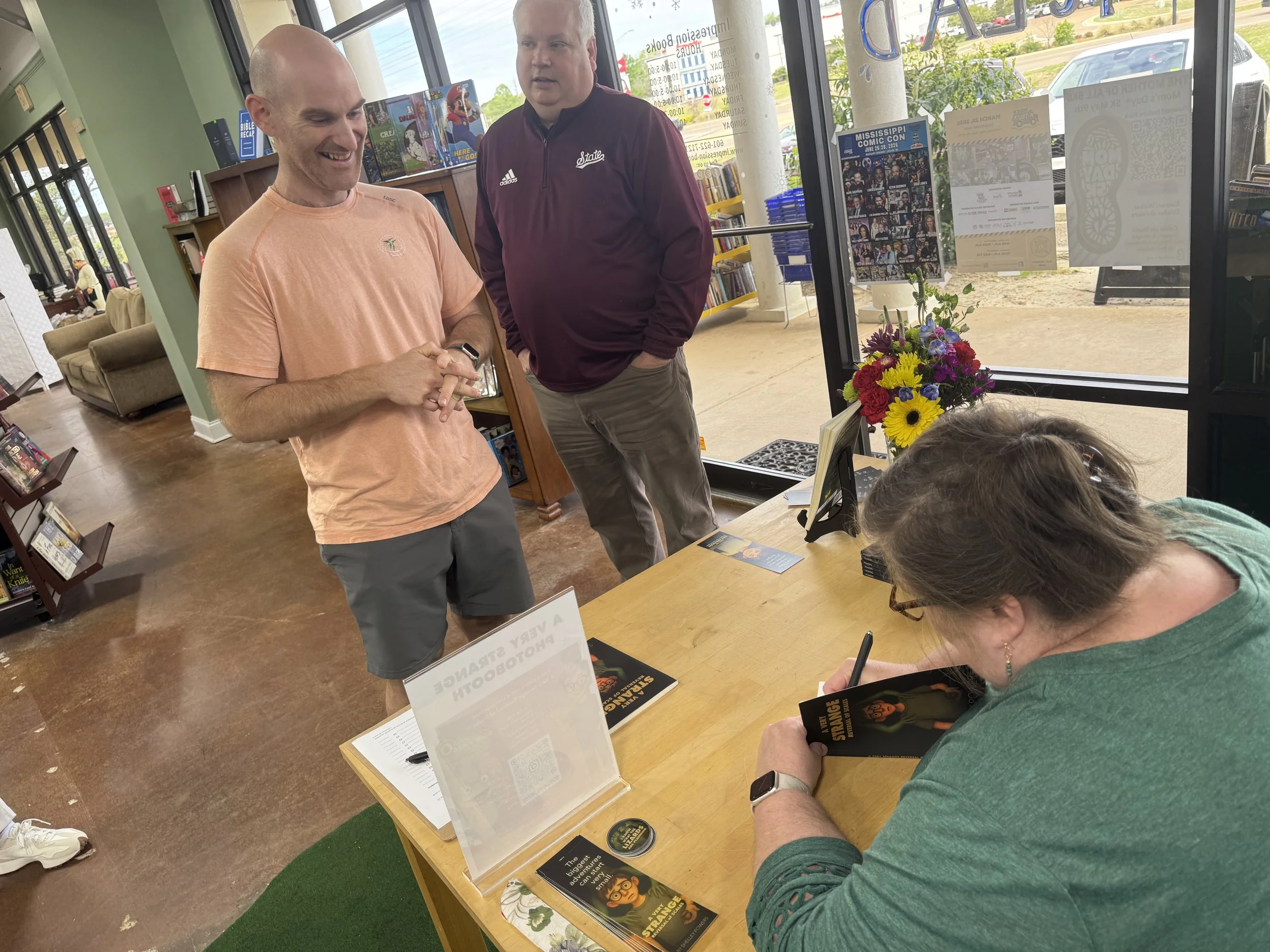 One plate that is, thankfully, slowing down is A Very Strange Reversal of Scales. Marketing for this book culminated with my first book signing March 28 at Impression Books in Flowood, MS. The event couldn’t have gone any better. Family, friends, coworkers, and acquaintances stopped in to buy and have me sign their copies of A Very Strange Reversal of Scales. Hosted by store owner, Ron Traxler and his son Brendon, the event at Impression Books ended with me selling out of all 30 copies of my book and needing two days to recoup from the excitement! Thank you to Ron and Brendon for the welcome. I felt like a superstar!