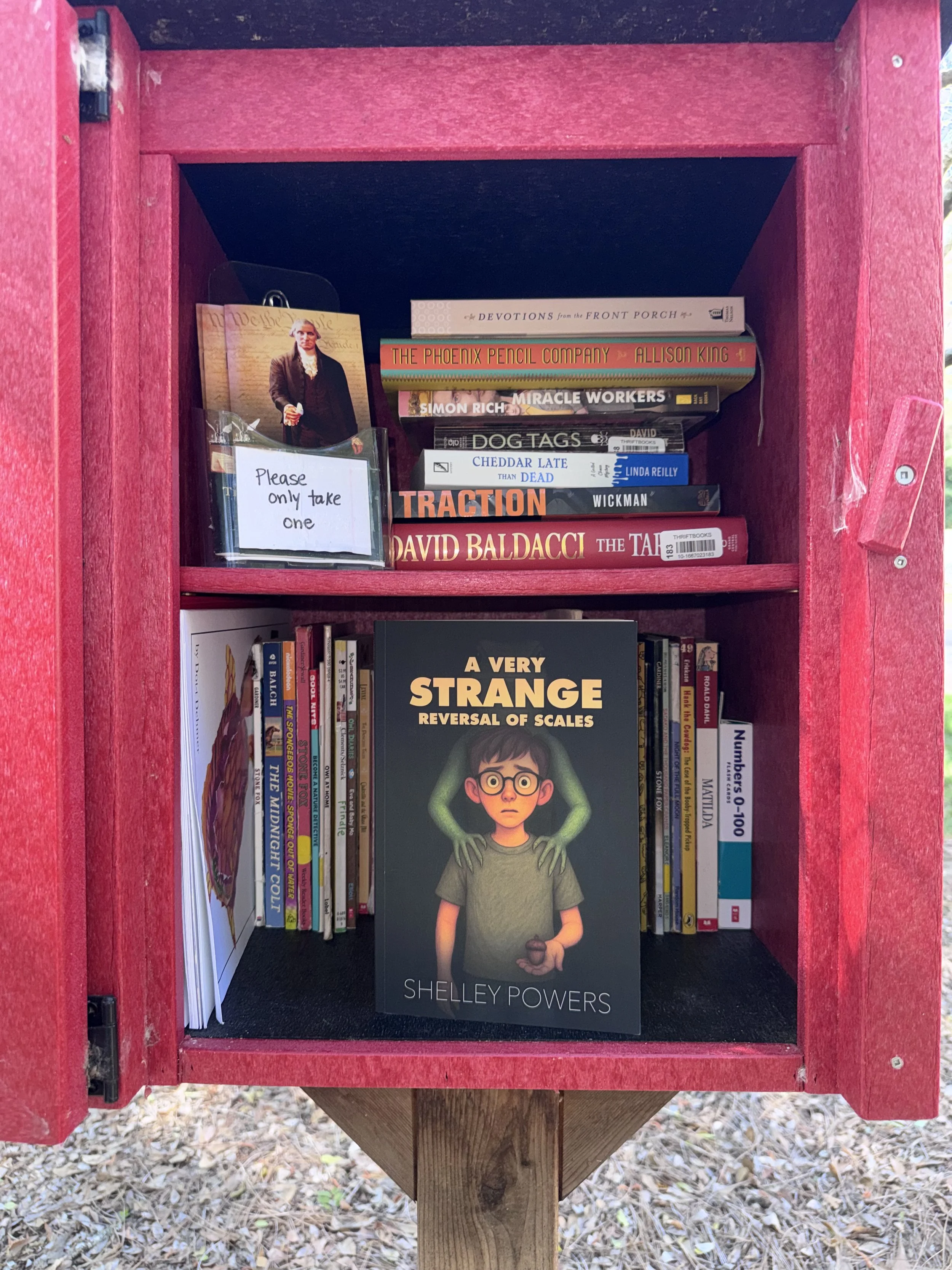 Finally, my friend and Bookstagrammer Extraordinaire Tatia Kiser (@mississippimomreads) surprised me at church this past Sunday by placing a copy of A Very Strange Reversal of Scales in The Little Free Library at Parkway Hills United Methodist Church.
